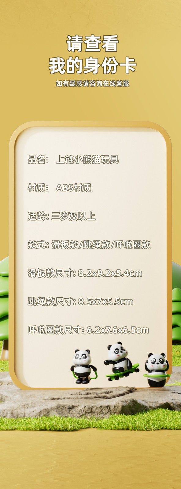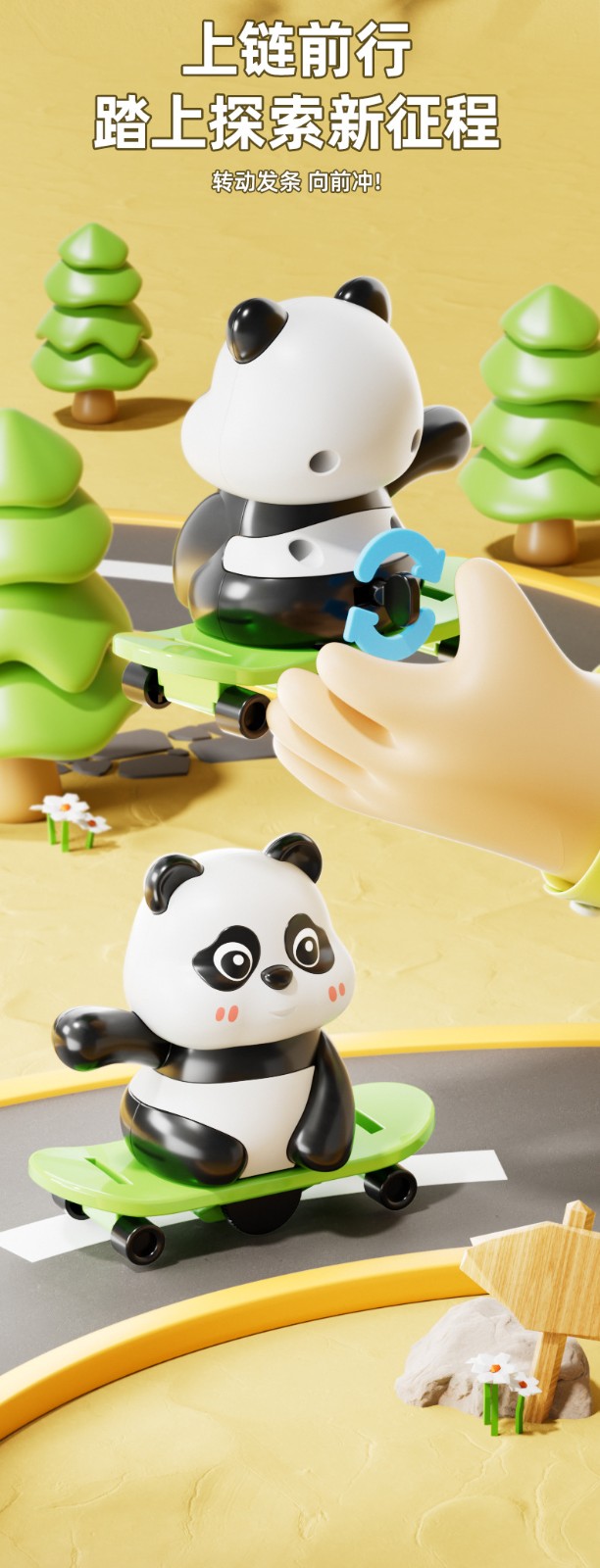 ✅這款「跳繩轉圈熊貓」是結合國潮風格與發條機械原理的創意玩具。✅可愛的熊貓造型,搭配跳繩、滑板等動態設計,只需轉動發條,小熊貓就會生動地旋轉跳躍,充滿童趣。✅無需電池,環保又耐用,讓孩子在觀察與玩耍中,理解簡單的機械原理,啟蒙邏輯思維。✅