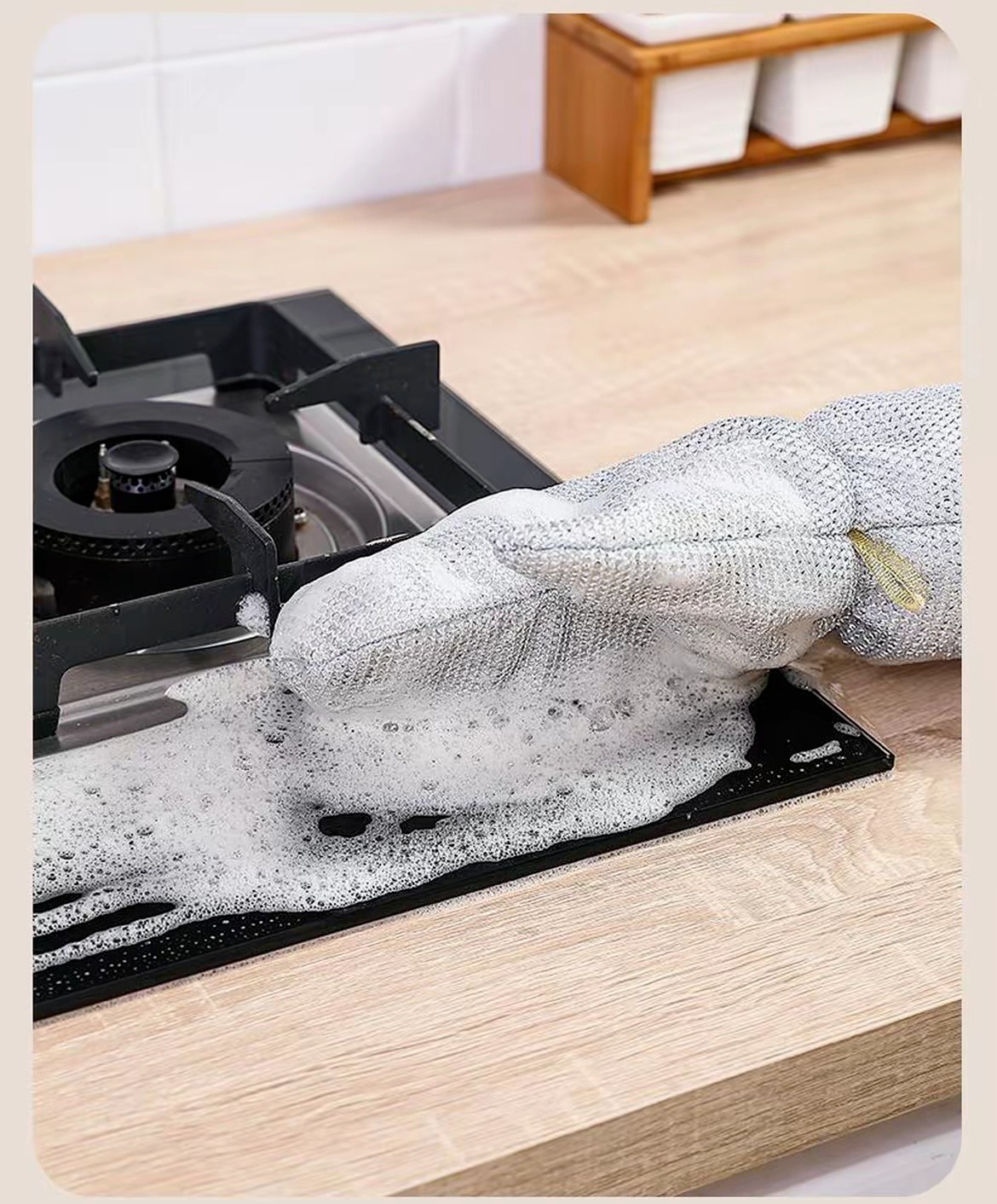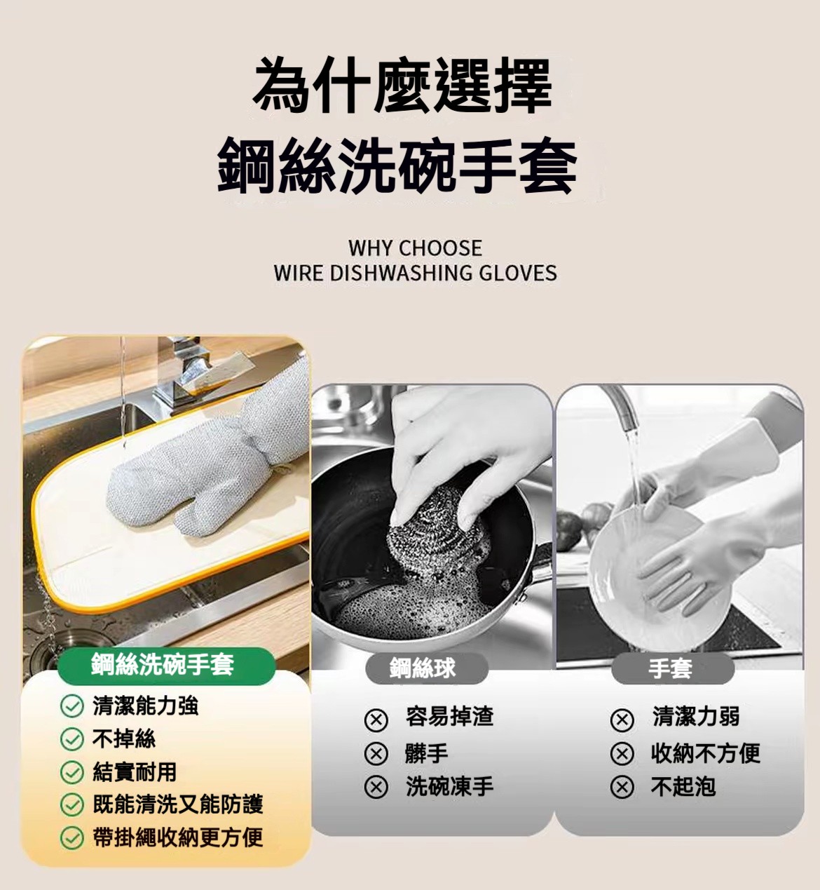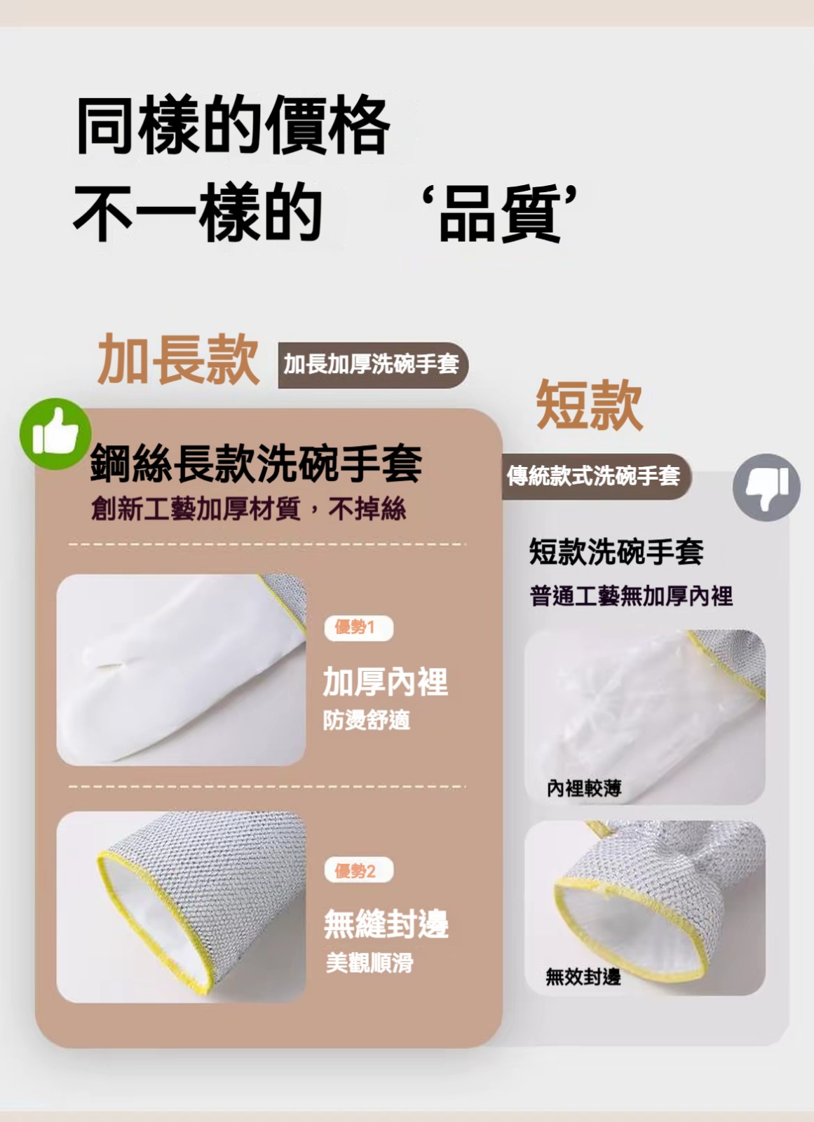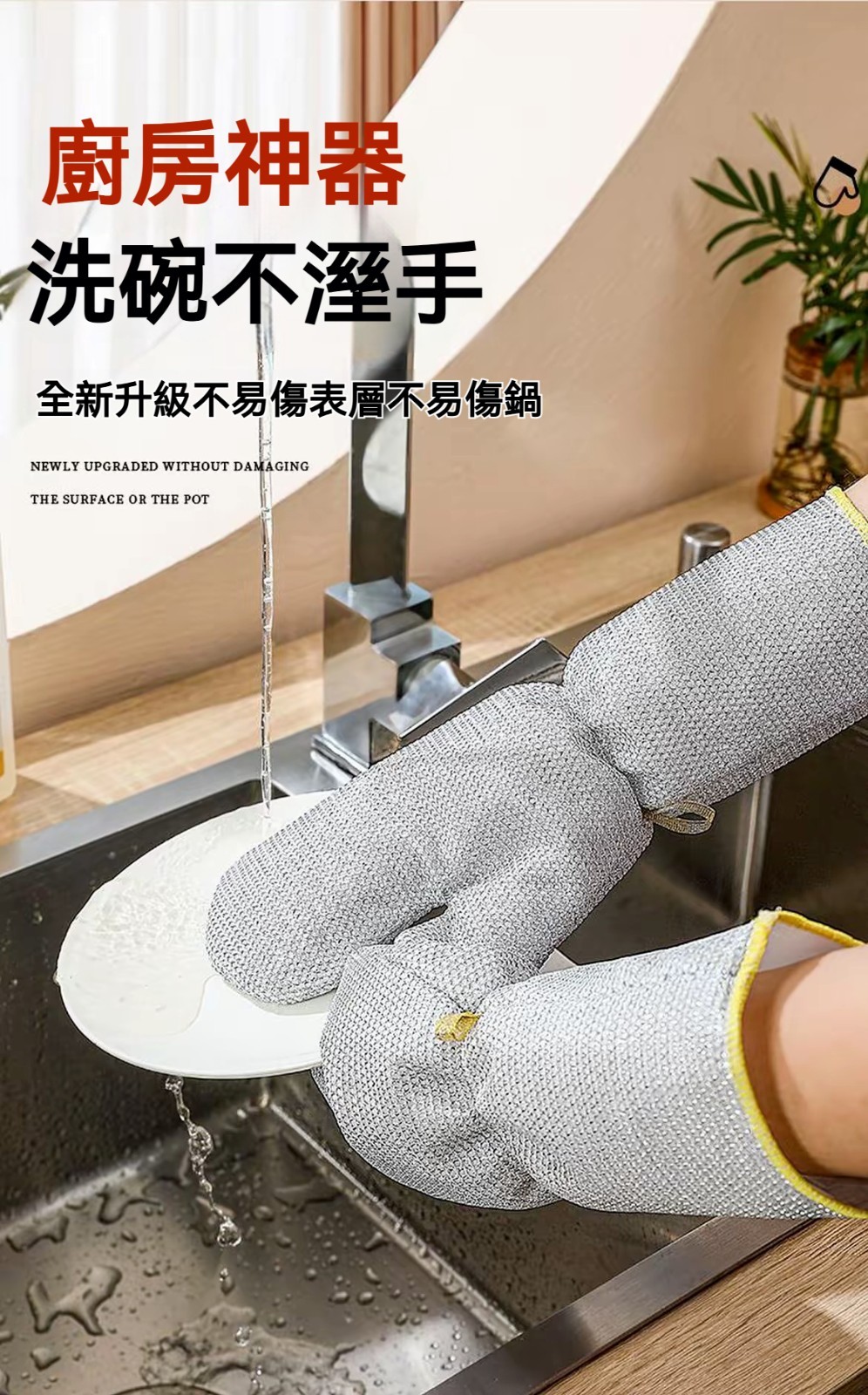 冷天洗碗手不凍?秘密在這雙「鋼絲鎧甲」裡! ✅內裡加厚絨毛 ✅表面鋼絲編織 ✅彈性貼合手型 ✅加長護腕設計